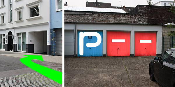 Im Hinterhof handelt es sich um die 3. Garage von rechts - mit ampido Schild gekennzeichnet - Die Garage kann jederzeit auf und zu gemacht werden, da das Schloss nicht verschließt.