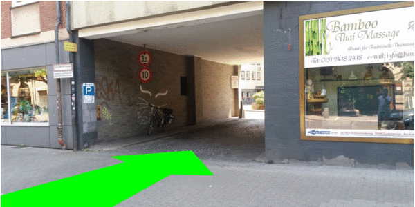 Die Parkplätze befinden sich im Innenhof hinter einem Tor in der Tiefgarage. Das Tor öffnen Sie mit einem Schlüssel aus der Schlüsselbox, dieser befindet sich an der Säule.